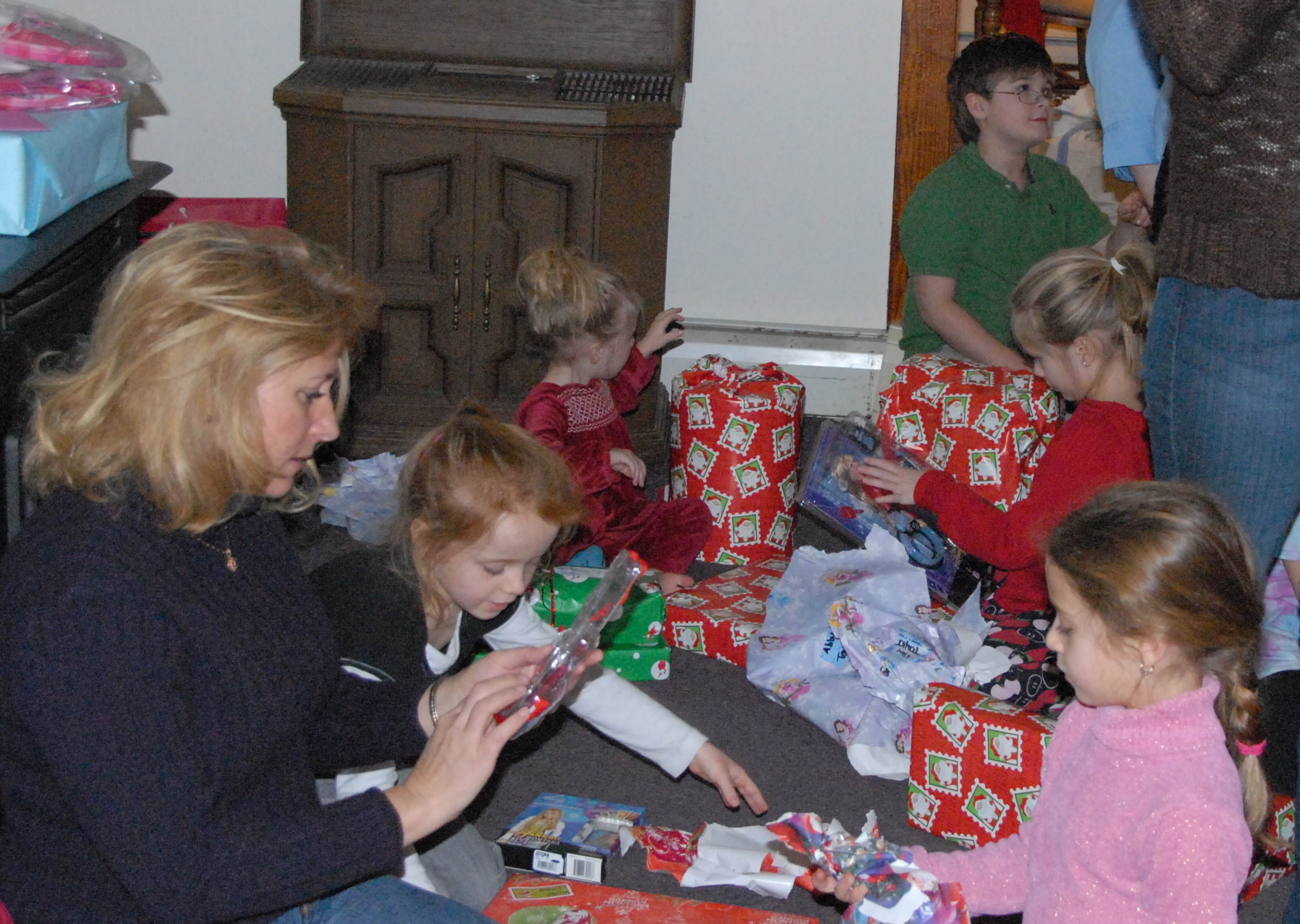 With that many kids and presents organized chaos is a nice way to